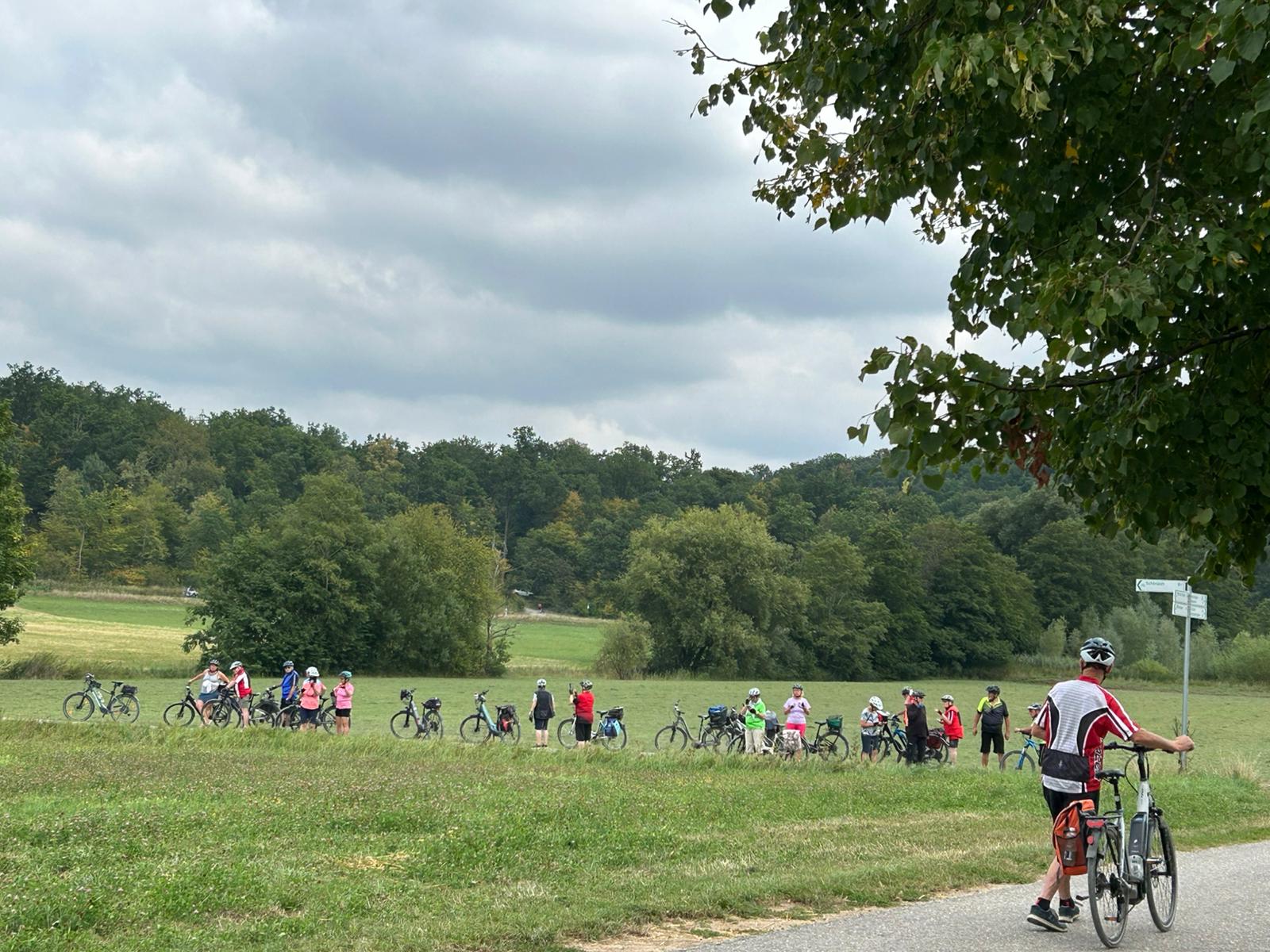 Bei sehr angenehmen, fast kühlen Temperaturen radelten 15 Teilnehmer über Grötzingen, Harthausen, Neuhausen, Wolfschlugen nach Denkendorf. Kleine Pause und Fotostopp beim Kloster.